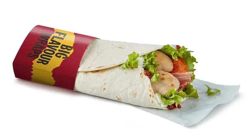 The BBQ & Bacon Chicken One-Grilled is a delicious wrap on McDonald’s menu in the United Kingdom. This wrap features grilled chicken, smoky BBQ Sauce, bacon, cool mayo, tomato slices, and lettuce, all in a large warm tortilla wrap. This wrap is available at McDonald’s Wrap of the Day on Tuesday and Thursday. You can also get this wrap with crispy chicken pieces from Mcdonald’s Menu.
